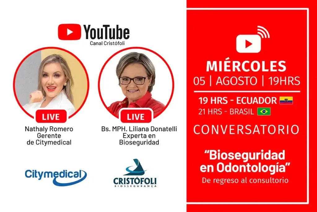 Los invitamos a participar del» Conversatorio: Bioseguridad en Odontología» De Regreso al Consultorio a través de Youtube de Cristofoli. Miércoles, 5 de agosto, 19 h en Ecuador – 21 h en Brasil Liliana Donatelli y Nathaly Romero. Citymedical y Cristofoli Programate:…