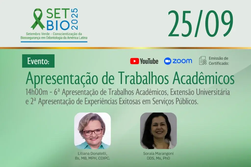 SETBIO 2025 Apresentação de Trabalhos Acadêmicos e Experiências Exitosas em Biossegurança em Odontologia. O que é o SETBIO 2025? O SETBIO 2025 -Setembro Verde pela Conscientização da Biossegurança em Odontologia é um evento imperdível para todos que atuam ou estudam no campo da…